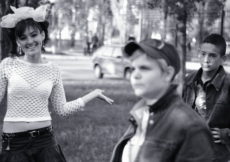 Данное фото у меня вызывает противоречивые чувства. И нравится и нет. Возможно потому, что сравнивать Катю с Верой как-то не хочется. Да и не понятно мне для чего их сравнивать. В данном случае, ничто не заставляет это делать. Даже взгляд мальчика, обращенный в сторону Веры (а Веры ли? мне кажется, он смотрит "сквозь" и думает не о Вере, а о своём) не провоцирует на сравнение персонажей.