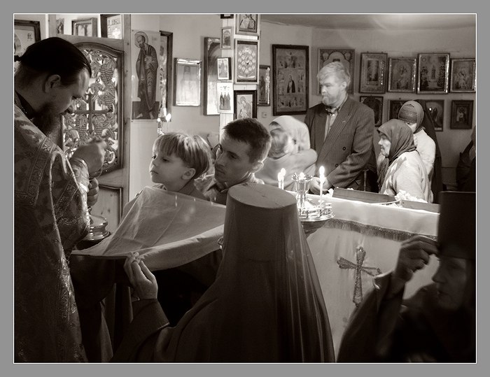 священник, отец с сынишкой, бородатый мужчина с индифферентным видом - выразительный!