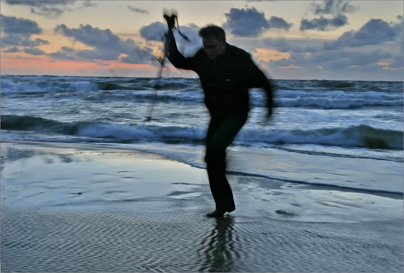 Прикольно!сперва подумал что рыбу гарпунит....Танец фотографа!