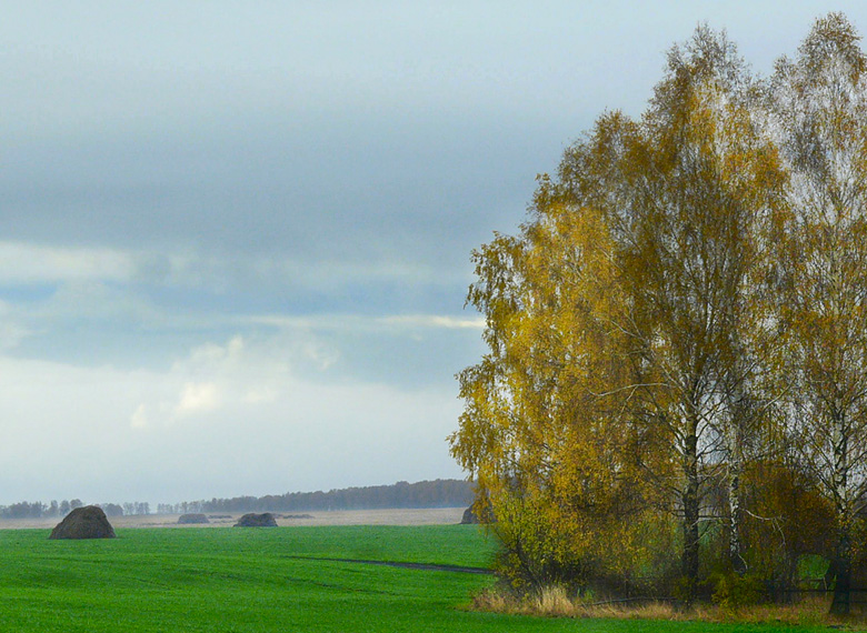 Павел, но почему-то кустик пожухлой травы под березой практически без деталей и потеряна фактура на поле из-за чего оно кажется плосковатым.