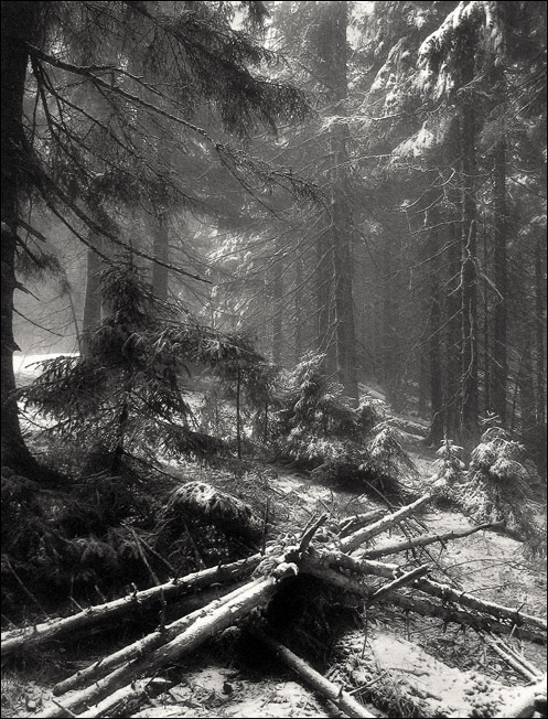 По самой карточке могу сказать следующее. Дерево слева и елка рядом действительно лишние, имхо. Добавить его полностью - все влево завалится. Зато интересно то, что удалось пространство передать, что здесь довольно тяжело сделать. Ели на ЗП светлее ПП и плюс просвет слева. Мне кажется было интересным попробовать сделать кадр от того ряда маленьких елочек на среднем плане в сторону просвета слева, организовав елки на ПП.