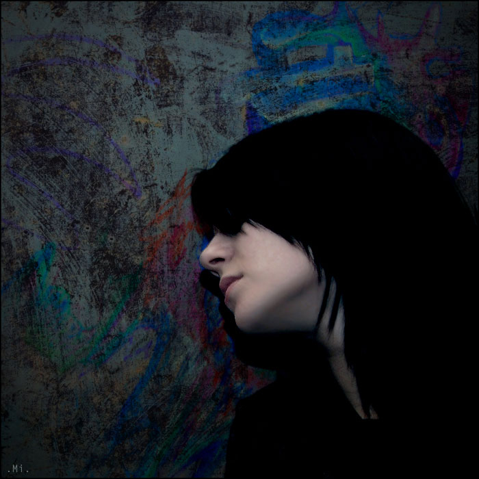 Интересная работа. Здорово смотрится этот плотный черный ("запечатанный"!) цвет на пестром цветном фоне! Особенно волосы. И ракурс хорош. 5!