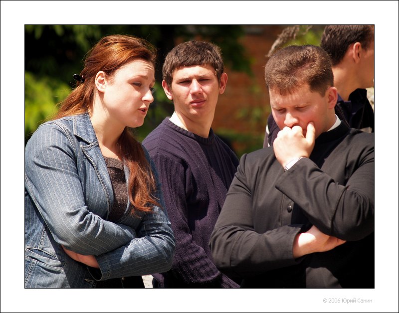 Точно - священник. У них там какойто слет был. О чем беседовали - не знаю. Но тому парню, на заднем плане, тоже интересно было :-)