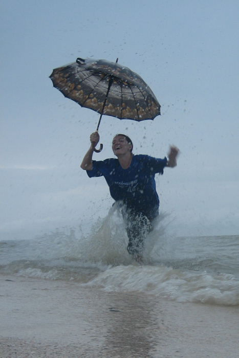 Сначала пошел град, потом ливень и я не смогла усидеть в такую погоду дома, пошла на море :) Вода была очень теплой :). Автопротрет.