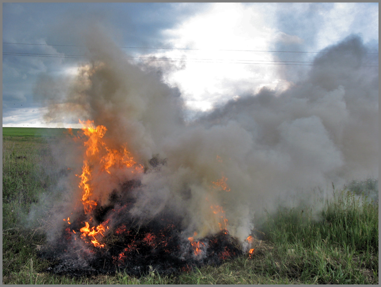 Не понятно, что тут происходит. То ли пожар, и 01 надо звонить, то ли просто так солому жгут. А, может, не солому?