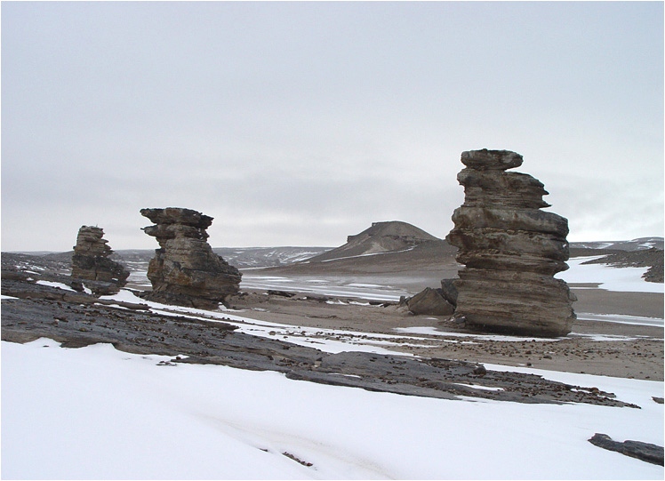 2 - да, там так и есть, в центре - ложбина, там скапливаются красные водоросли,кое-где встречали вобще алый снег - столько их много! а здесь чуть грязьки, чуть водорослей - дает розоватый оттенок, а голубоватый цвет - из-за сумерек, все высадки на архипелаги делали ночью, тут тоже - 3 часа ночи, немного шумит снимок из-за недостатка освещения