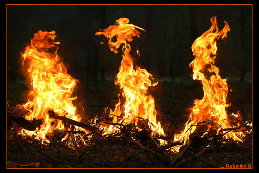 Огонь - это нечто неуловимое для глаза, извивается, меняет форму и цвет. И только остановив мгновение можно увидеть живущие в огне образы...