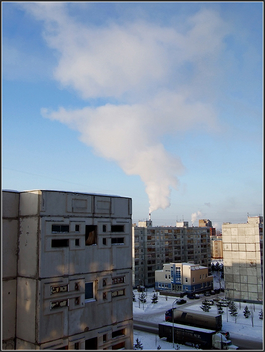 Зима в городе. Дым среди каменных джунглей