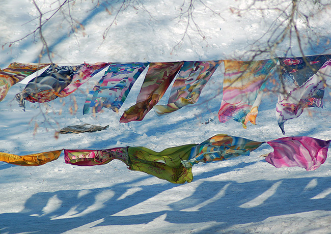 Суздаль, шелковые платки на ветру