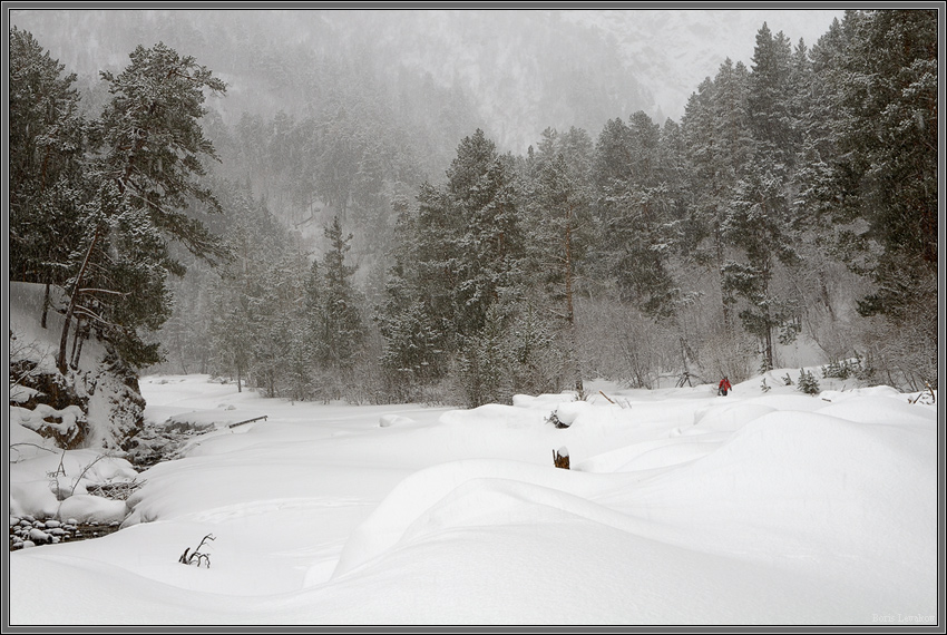 Замечу только, что для того, чтобы сделать похожий кадр, нужна соответствующая погода, которая от наличия хорошей камеры не зависит. А вот погоду такую можно не дождаться даже за неделю. А уж за два дня тем более:))) И еще. Я в этих местах не в первый раз. И не в первый раз снимал в снегопад, но вот никого с фотокамерами в такую погоду не встречал.