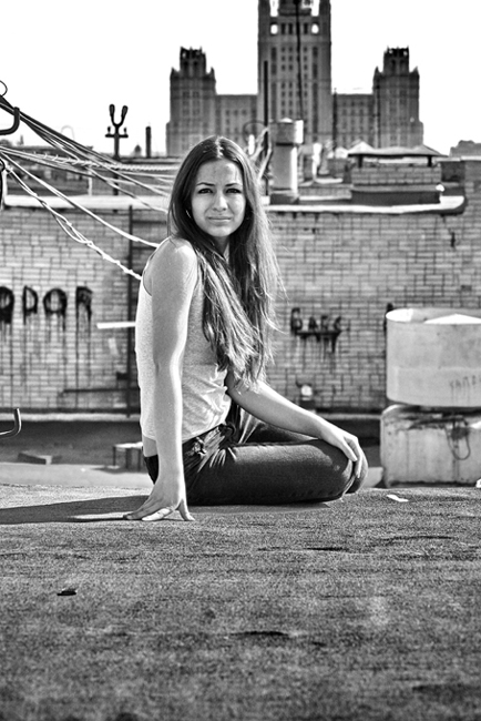 Нравится фотография, красивая девушка. Мне кажется, что стоило бы захватить здание на заднем плане целиком. Всё имхо.