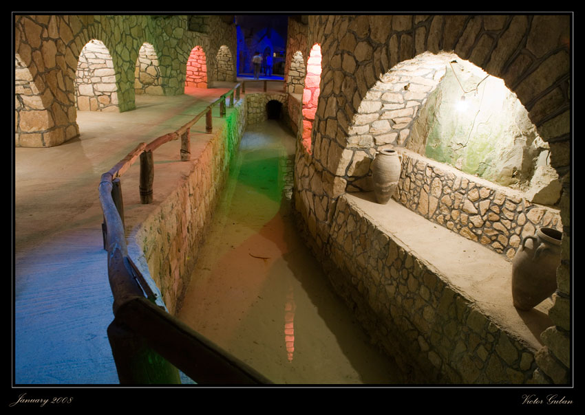 Это подземные гроты, которые свыше двух тысяч лет назад использовались для хранения воды. Месторасположение - Иран, остров Киш (на самом юге страны). Год назад это подземелье освещалось стандартными лампами, а сейчас иранцы накопили денег на разноцветные. :)