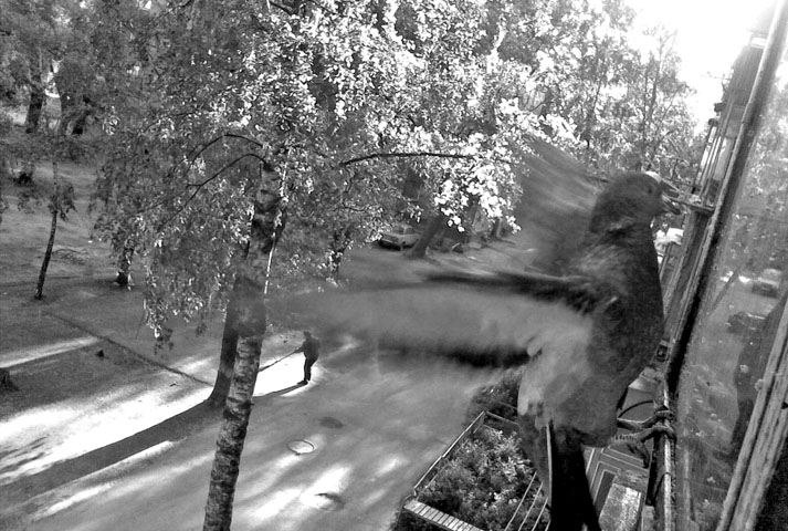 Раннее утро, солнышко встает, а дворничиха уже тупо метет двор, голубок прилетел на завтрак, и надо идти на работу...