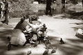 4/ Символ вечного лета - объевшийся персиков до желудочных колик мальчик? То, что он играет в прятки - из этой карточки не видно никак. Автор же говорит, что мальчик не имеет никакого значения, важны только его тапочки - более, чем странное заявление (?). Сюда же до кучи неряшливая кадровка: одноколёсный велосипед, надрезанный снизу персик, кусок мусорника из-за угла, скомканная торба на гвозде... - это тоже всё не имеет значения?