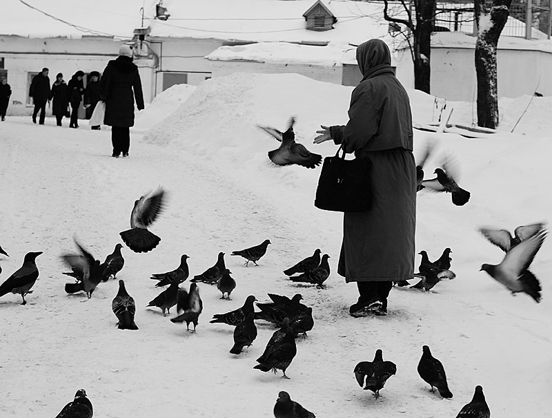 Меня тогда зацепило, что баушка шла в шлейфе голубков. Пока выковыривала фотик, половина сытых и довольных птыц улетело.Остальные - тут. А вообще, Баранкин, будь человеком,я вчера мысленно сопровождала Вас в одной тут дискуссии.Где негоже даме влезать,особенно без статуса и звания. Шарп за мной, ладно?