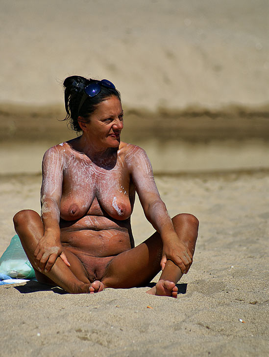 первое -- чья-то мама раздевается, мажется кремом от загара, и садится в известной нам позе на песочек;