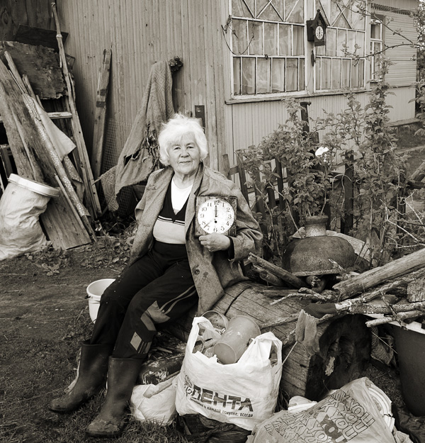 дер. Выбье, Кургальский п-ов, Ленинград. обл. /Кадр не постановочный, во время разговора Зоя захотела сфотографироваться, неожиданно взяла в руки старые часы буквально на несколько секунд, а потом убрала в сторону).