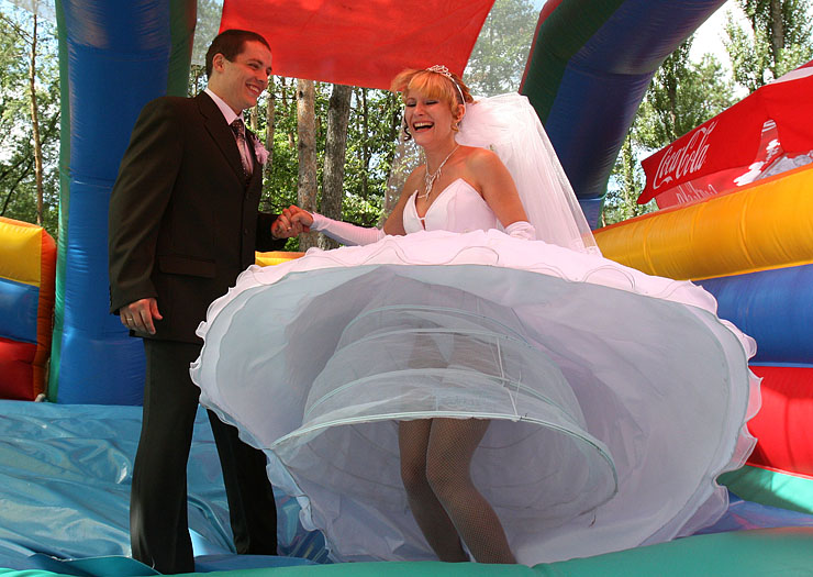 Жолко мне как-то невесту... ей и так не легко в таком платье целый день хоить, а еще и на батут затащили... ! 8)