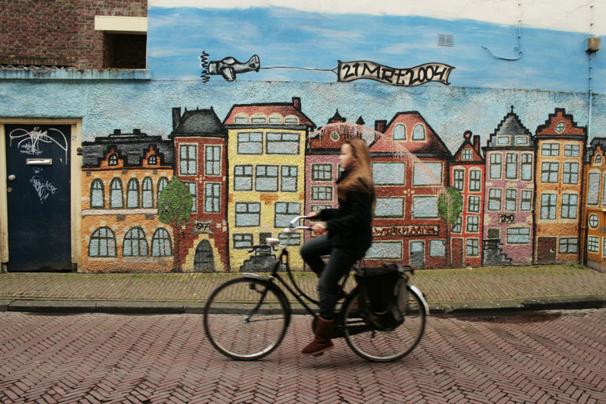 Симпатишная стеночка на фоне барышни с велосипедом или наоборот :-)))