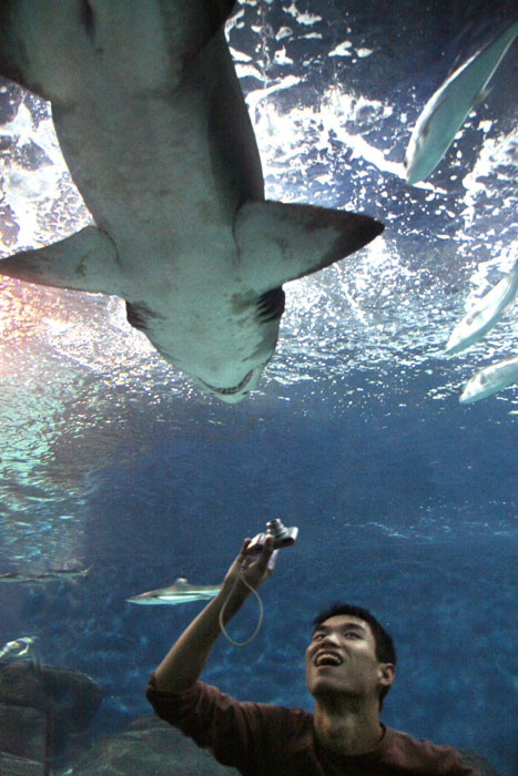 13/ Александр, думаю, это не со стороны. У них такая система аквариума, что вы идете в тунеле из стекла, а над вами вода и рыбы. Страшно немного, вдруг стекло не выдержит.