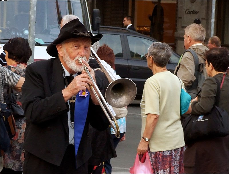 Видел я этого деда в Праге,только он на саксе играл.