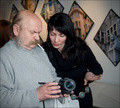 Репортаж с открытия выставки Риты Фединой. В кадре модель Ольга из Латвии, Фотограф Лера Сухова с дочерью 7 месяцев отроду. На фоне Олег Селезнев.