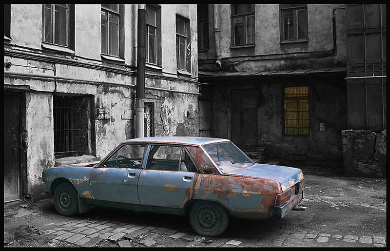 Машину тоже можно обесцветить, одно окно оставить.