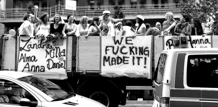 есть некоторая смысловая разница между тем, что написано на грузовике, и той версией порядка слов, что приведена во втором комментарии. Особенно мило смотрится запятая:)