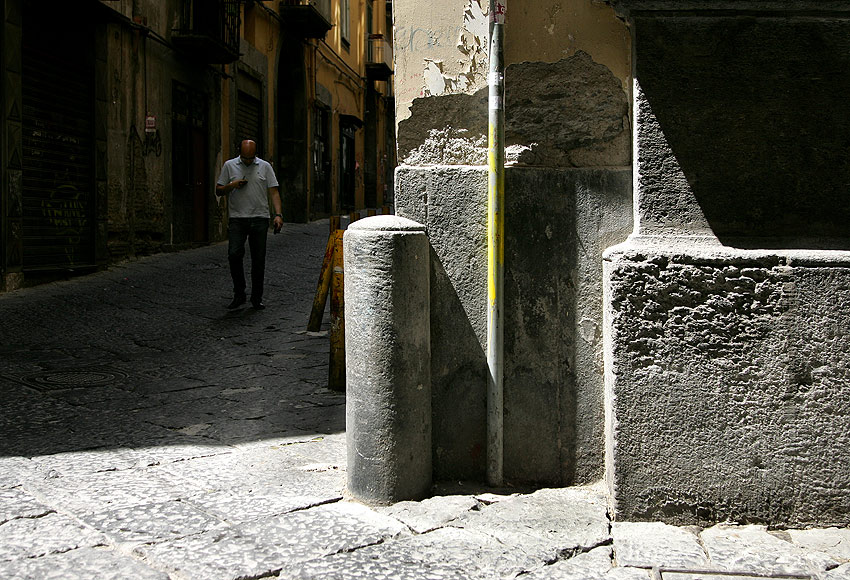 /20/ ну, тема проста. неаполь и неаполитанцы. жаркий полдень и прохладная тень. мне нравится форма в которой это подано. может, если бы сделать шаг влево, чтобы желтая конструкция полностью вылезла из-за каменного столба, было бы еще лучшее.