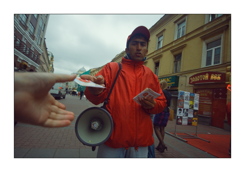 И последнее, лично мне, стрит-фотография, особенно когда я снимаю с пуза, доставляет спортивное удовольствие. Я вижу кадр, знаю, как бы мне хотелось его скомпоновать, но не знаю, насколько мой мозг взаимодействует с моим брюхом. И дома, при просмотре, я иногда сильно разочаровываюсь, понимая, что интересный кадр безвозвратно испорчен, а иногда ласково поглаживаю свое брюшко понимая, что мозгу до него еще ой как далеко. :)