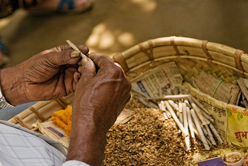 Индия, Гоа. Плантация специй. Пожилой индиец скручивает сигары из банановых листьев.