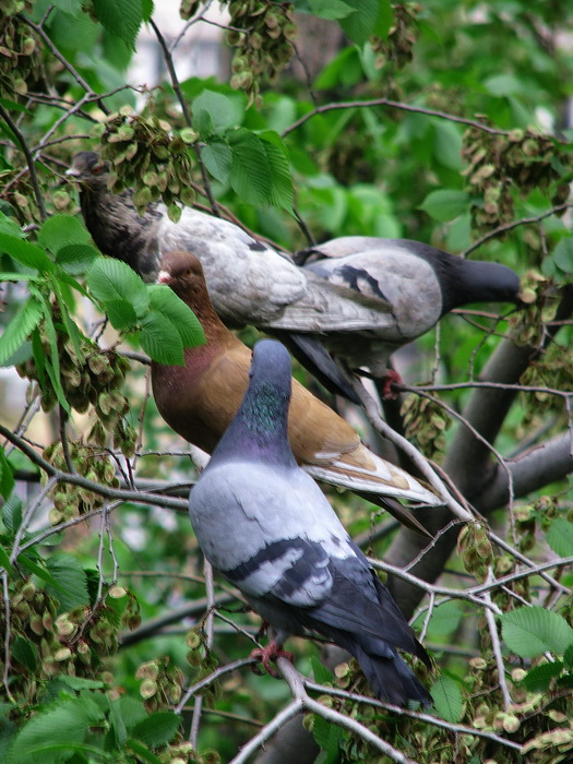 Интересно видеть голубей на дереве :). Как дикие птицы!