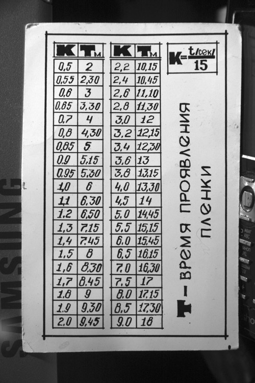 Всегда предпочитал работать только с большим рулоном пленки и привязанным к этому рулону концентрированным фильтрованным одноразовым проявителем, который составлял один раз в месяц, разливал по 100мл бутылочкам. 50мл проявителя+200мл воды,22градуса 10минут проявки и всегда постоянный результат, который можно регулировать изменяя время проявки.