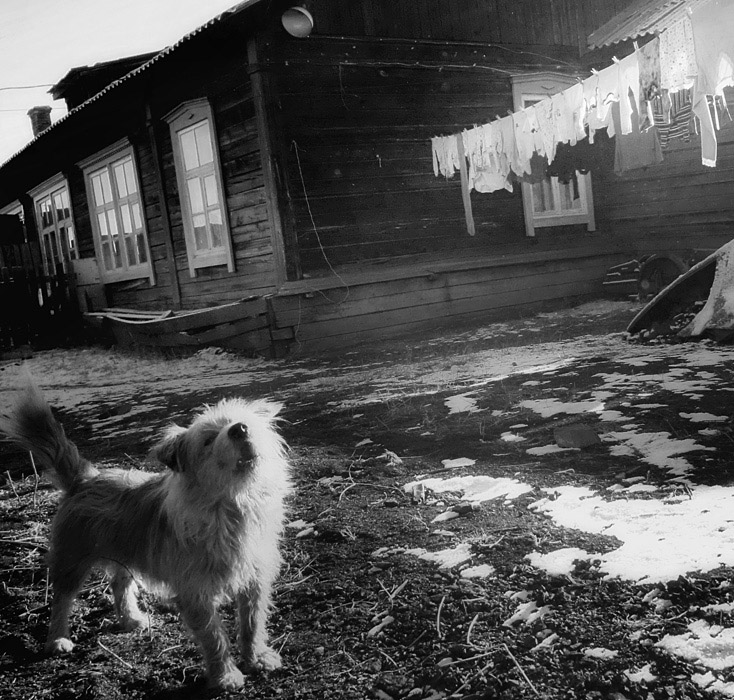 Вчера вечером ездили в поселок Восточный, недалеко от Читы, и вот там в одном из дворов за забором громко лаяла собака:) Прямо накидывалась на забор:) Сфотографировала ее на маленький фотик:)