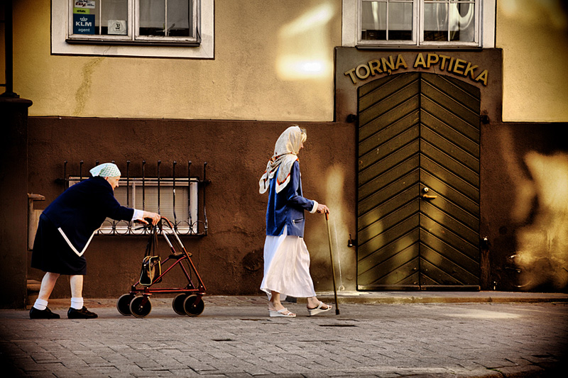 Кажется, бабули будут не первыми - вон впереди две тени! А двери-то закрыты, мистика... Может, здесь лекарства и для призраков продают? Сказочное фото, жанровое!