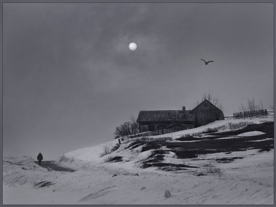 )))) все, что нужно: птичка, луна...и даже проталины. Хорошо.