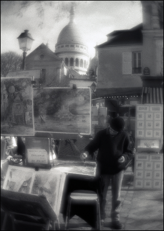 Техника монокля хорошо подчеркивает(пожалуй даже усиливает) миф о романтичности Монмартра,которая ничего общего не имеет с реальностью.