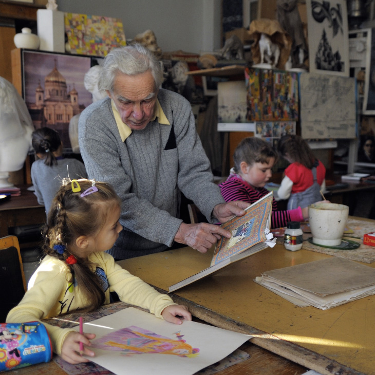 2/ Изостудия, дети рисуют, тема, сказки братьев Гримм. :)