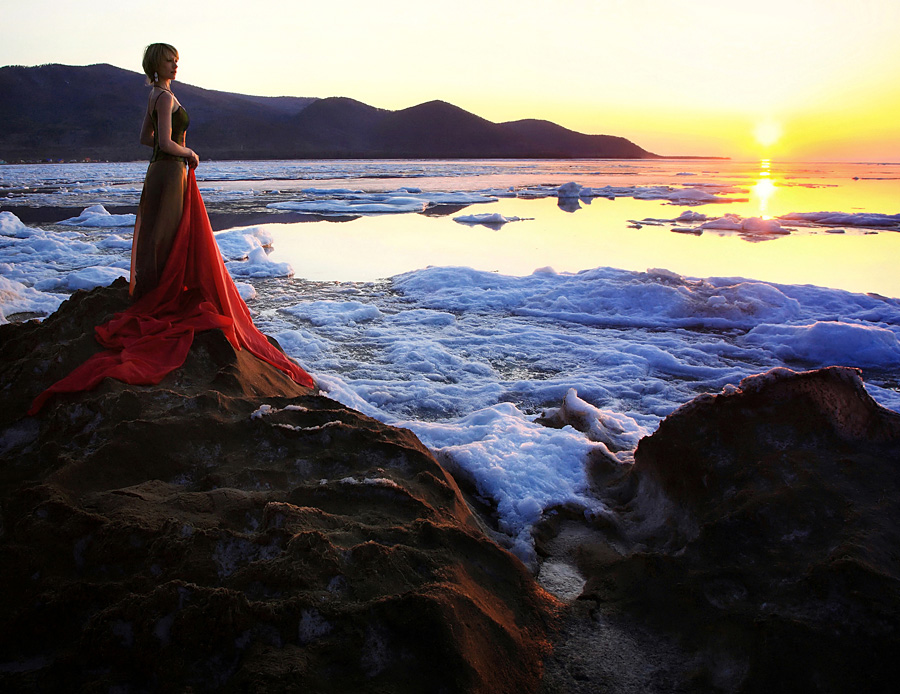 Контраст: снег и девушка в открытом лёгком платье. В целом, красиво!