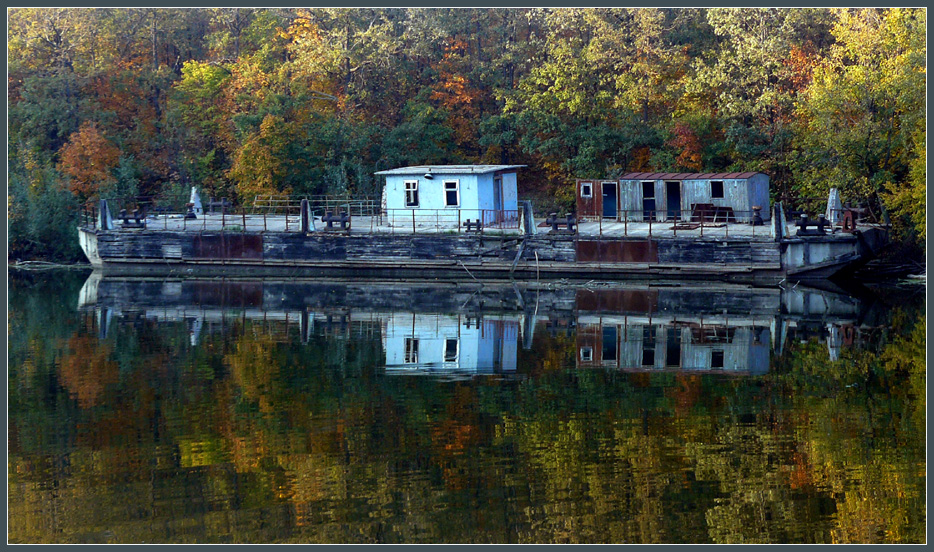 позабытый, позаброшенный старый дебаркадер? В былые времена жизнь бурлила на Волге, приходили к тебе небольшие теплоходы - омики, метеоры на подводных крыльях. Люди ходили туда сюда со своими пожитками, удобно им было по воде добираться до своего дома на берегу реки и приятно, сидишь на палубе пароходика, чайки за кормой, музыка играет, речными просторами любуешься. А сейчас тишина и покойно, редко пройдёт мимо круизный пароход или баржа с песком. Теперь нет речного транспорта, говорят, в Китай его продали. Наверное тебе больше повезло, чем городскому речному вокзалу, которого отдали под мебельный салон, всё таки на природе находишься...
