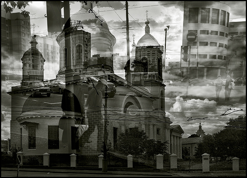 Москва. Андроньевская площадь. Двойная экспозиция в камере