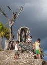 Пыжик соразмерен рисунку. Реальное окно и кирпичи, выглядывающие из-под штукатурки, хорошо в рисунок вписываются. Дерево на месте стоит. И ещё тропинка слева в улицу превращается.