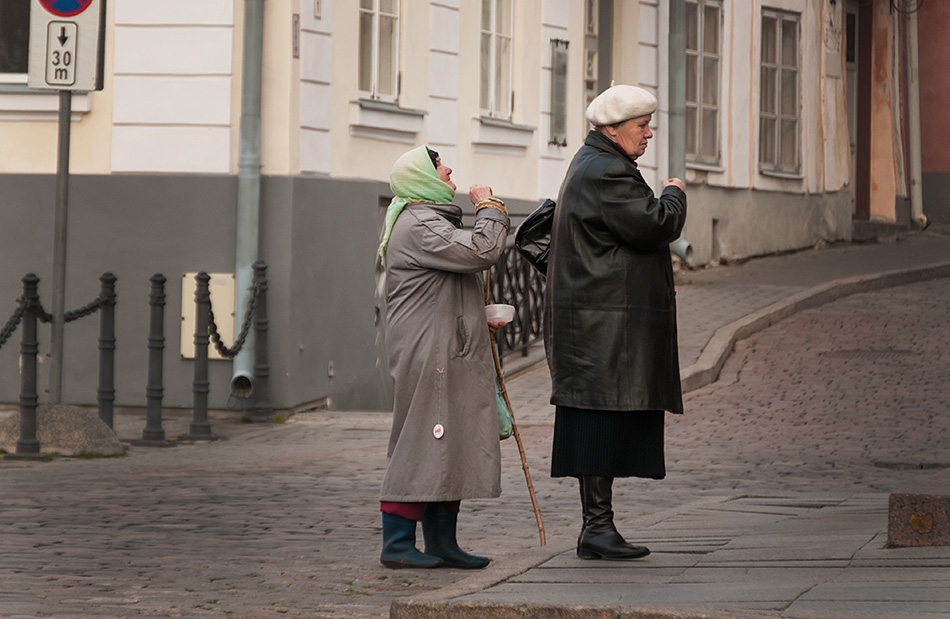 Отрезал бы до вертикального, чтоб старушка в платке была почти по центру. И тогда лишнее по бокам ушло бы. Больно она занятна - заслуживает более пристального рассматривания.