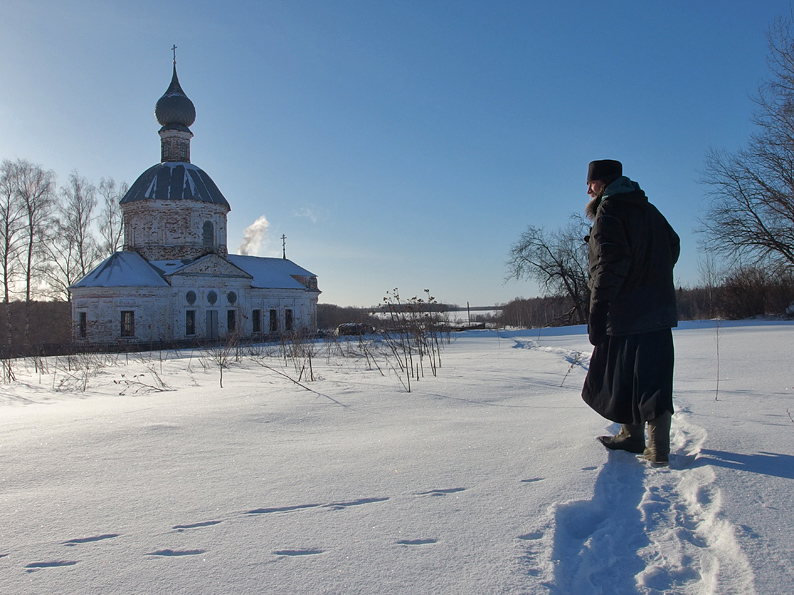 Иеромонах Антоний, настоятель церкви Успения (1807) в Бортницах. Он единственный кто бывает в селе через день что бы протопить церковь. Живет в нескольких верстах в соседней деревне Кузьмино, ходит в свои владения пешком. Нас с другом встретил сначало настороженно, но потом пригласил зайти в храм...