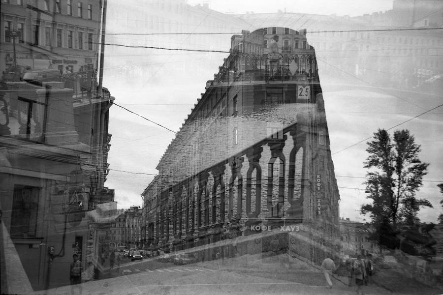 9. Если отдельно заниматься таким видом съемки, то жалко времени, которого действительно уходит много. Но если всегда иметь с собой аппарат с пленкой (занимает мало места), то почему не поэкспериментировать от случая к случаю? Делать коллажи в ФШ легко, но мне не интересно.