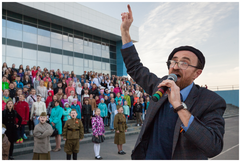 На снимке репетиция праздничного концерта сводного хора детей в Рыбинске. Руководит этим процессом Сергей Шестериков, уважаемый в Рыбинске и не только человек, грандиозный музыкант. Придурки ? Вот мне как-то так не кажется.