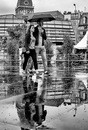 Забавно получилось: словно тот, что вдалеке за молодым человеком, держит зонт над его головой.