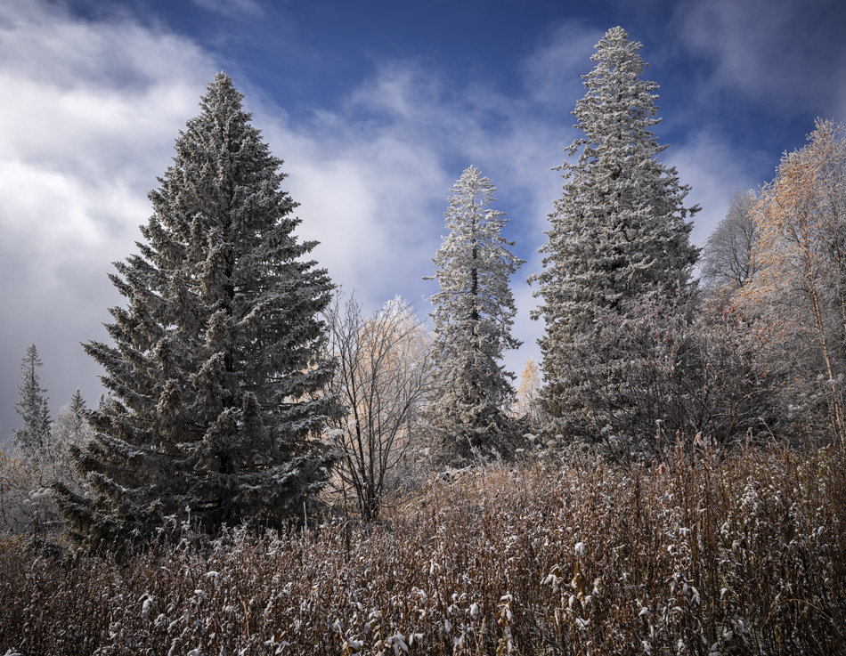 После снежного и пасмурного утра погода начала проясняться. Подножие хребта Зюраткуль. 29 сентября 2025г.