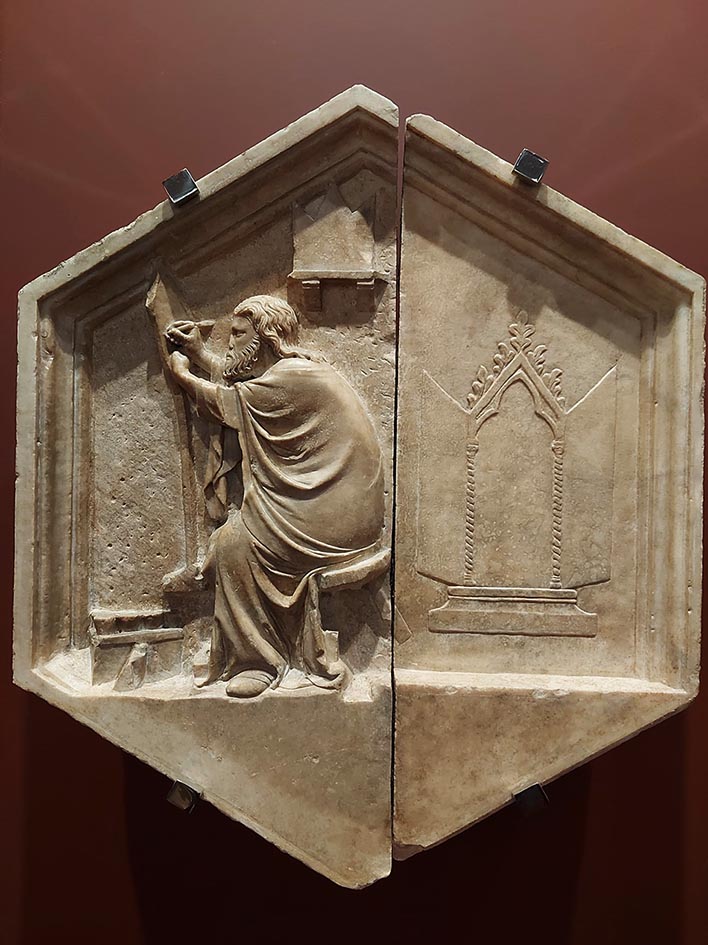 Андреа Пизано. Рельеф Рисует Апеллес, один из наиболее знаменитых греческих живописцев древности. Флоренция. Музей Опера-дель-Дуомо. Галерея кампанилы.