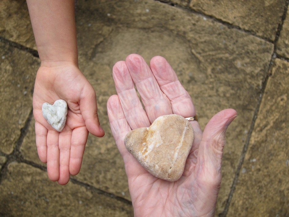 Снято в 2013 году, кажется, телефоном. Это руки моей бабушки Тамары и дочки Кати, которой тогда было 5 лет. Камушки мы нашли на пляже.